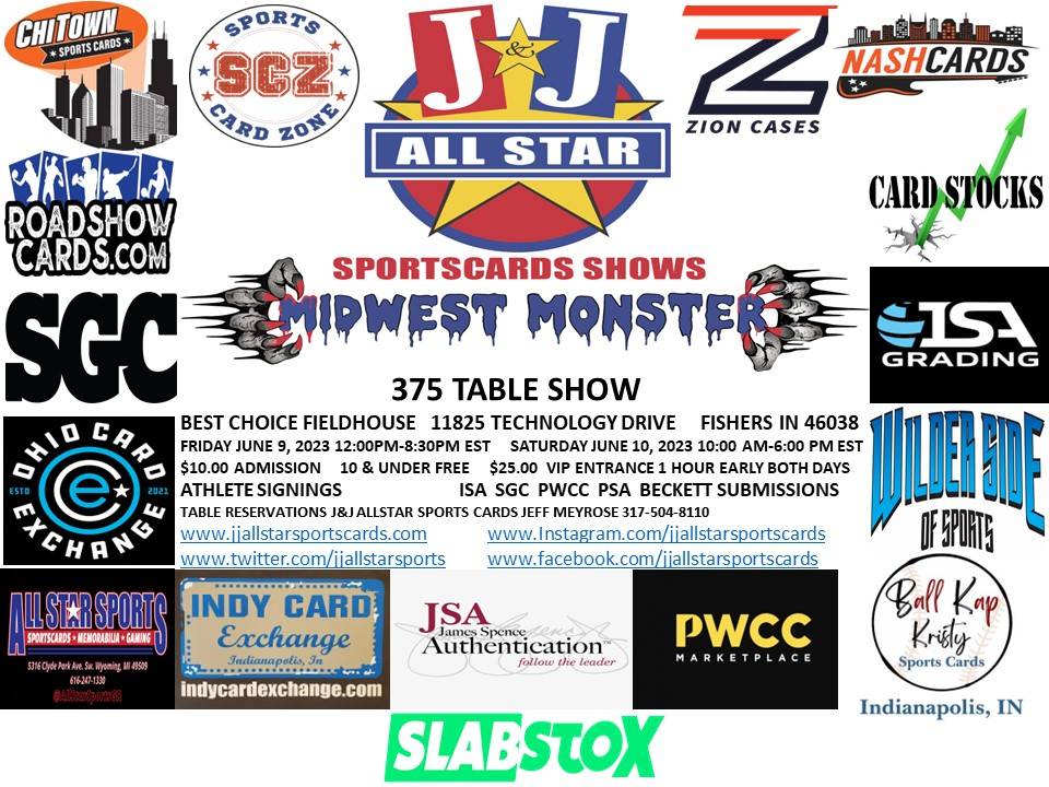 Free Admission! Kids and Public Welcome!Indiana and Kentucky’s Largest Monthly Sportscards Shows.Midwest Monster Show Coming June 9-10, 2023. Upcoming Shows We have a Saturday show each month in Indianapolis (Fishers), Indiana, and Louisville, Kentucky. Louisville, KY Indianapolis (Fishers), IN Read More Details The Midwest Monster is Back on June 9-10, 2023 learn more Facebook Twitter Instagram